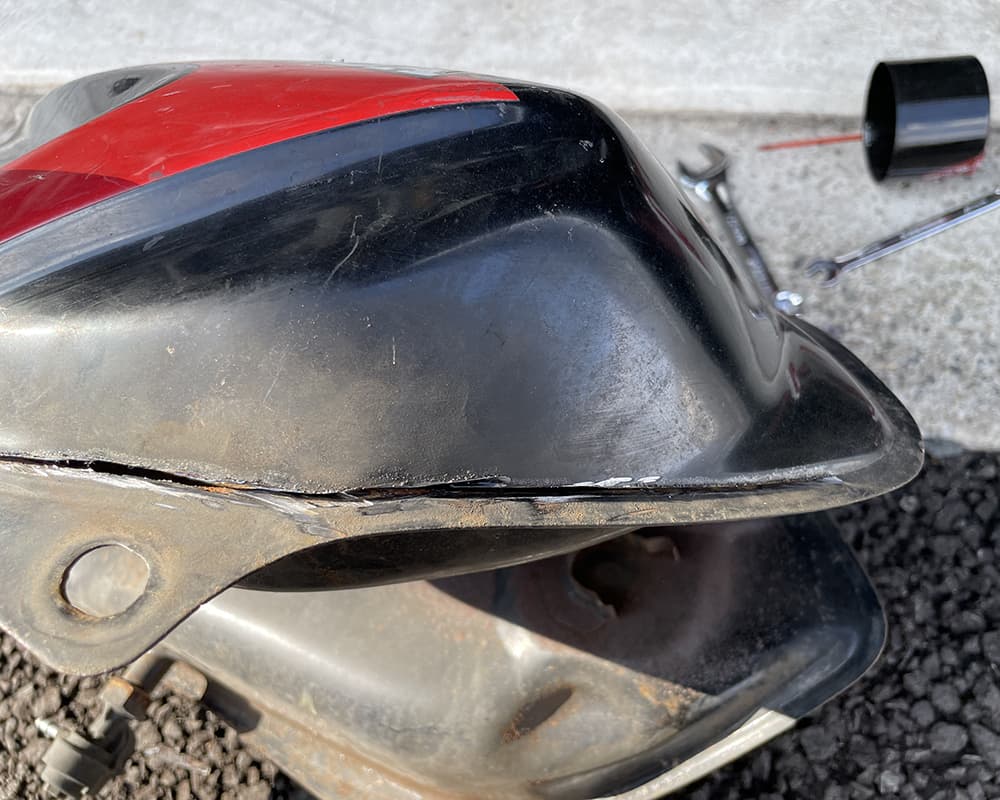 まずはタンク いきなり 給油口から地面が見えます