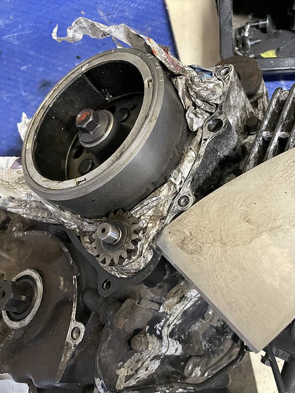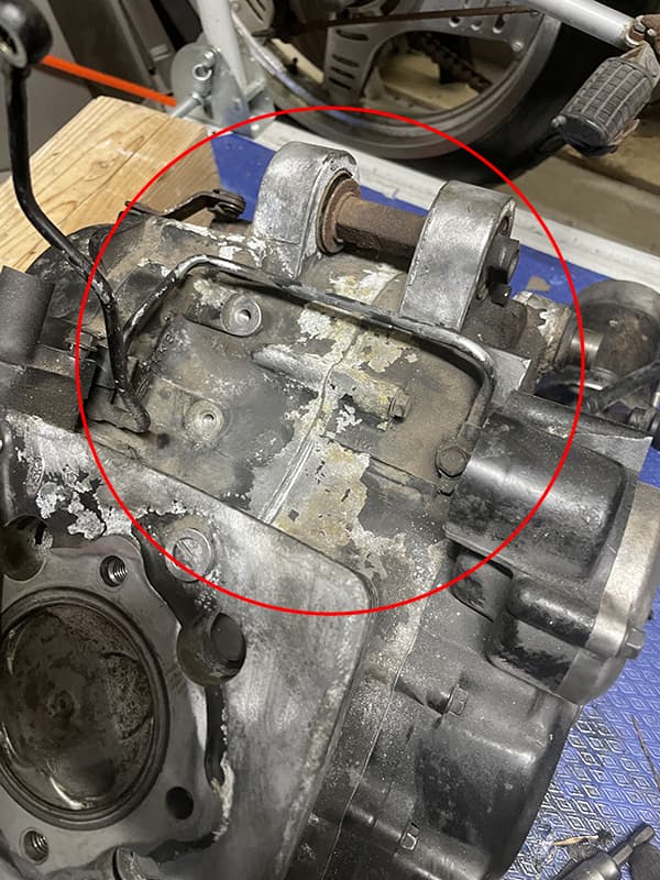 ジェネレータカバー側の古いガスケットをスクライバーで、除去します