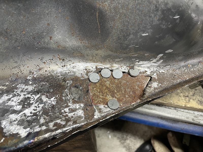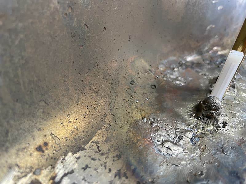 金属板を、溶接して塞ぎます