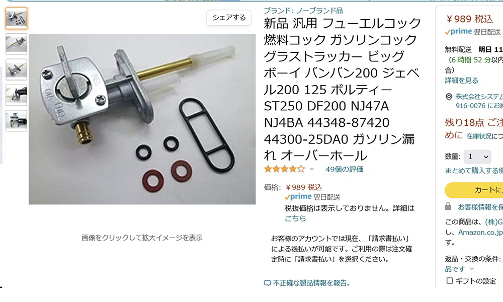 購入したコックです
