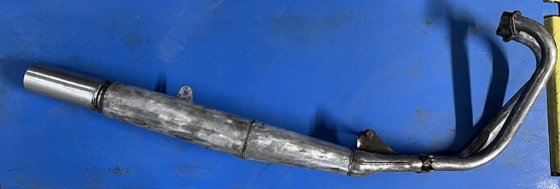 CBX125Fは、単気筒ですが、吸気 排気のバルブ毎に各1本ポートがあります4バルブなので、排気も2本あり、2気筒用のマフラーをさがしそれを加工しました