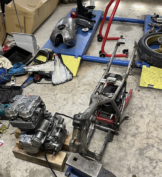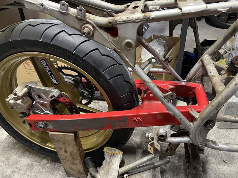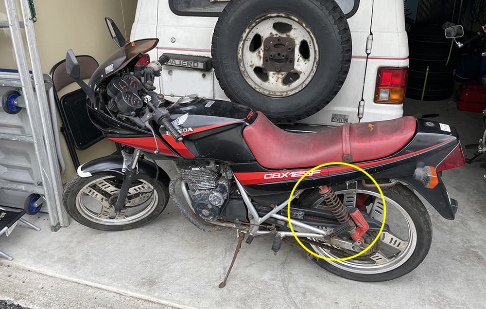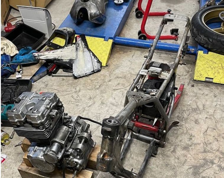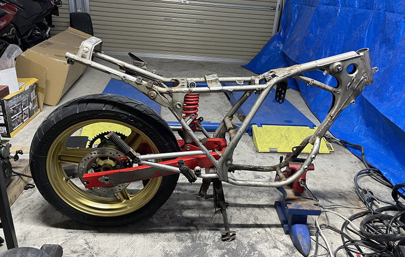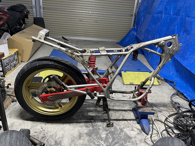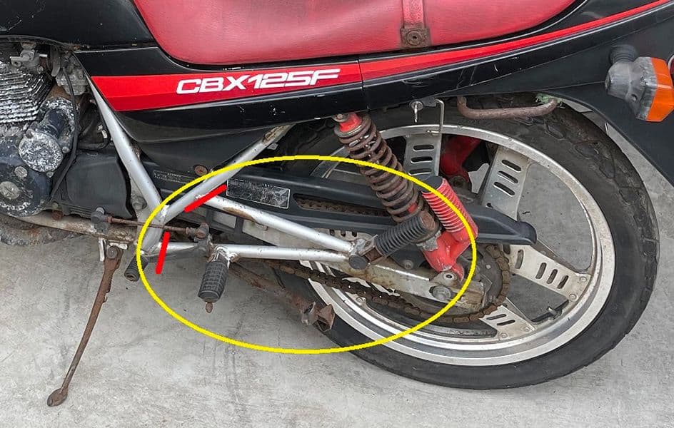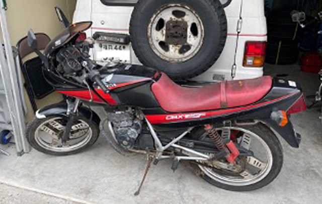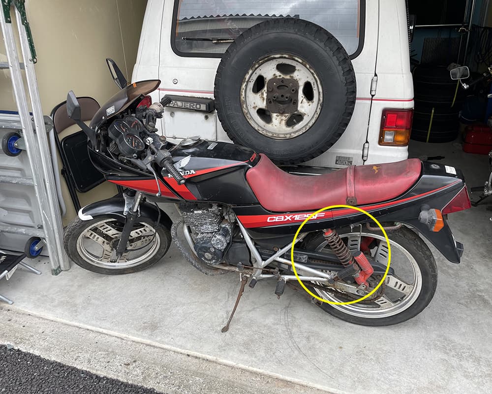 ブログは最低1年ぐらい継続したいので、なるべく手のかかりそうな車体を選びました。ホンダCBX125Fです。なんと最高出力17PS/11,500rpm運んでもらったらあまりにも錆び錆びで、タンクは穴だらけ使えるものはホイール、フレーム、ハンドルぐらい エンジンがだめなら最悪です。