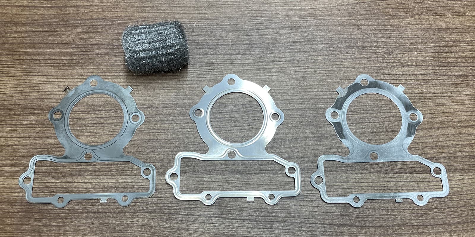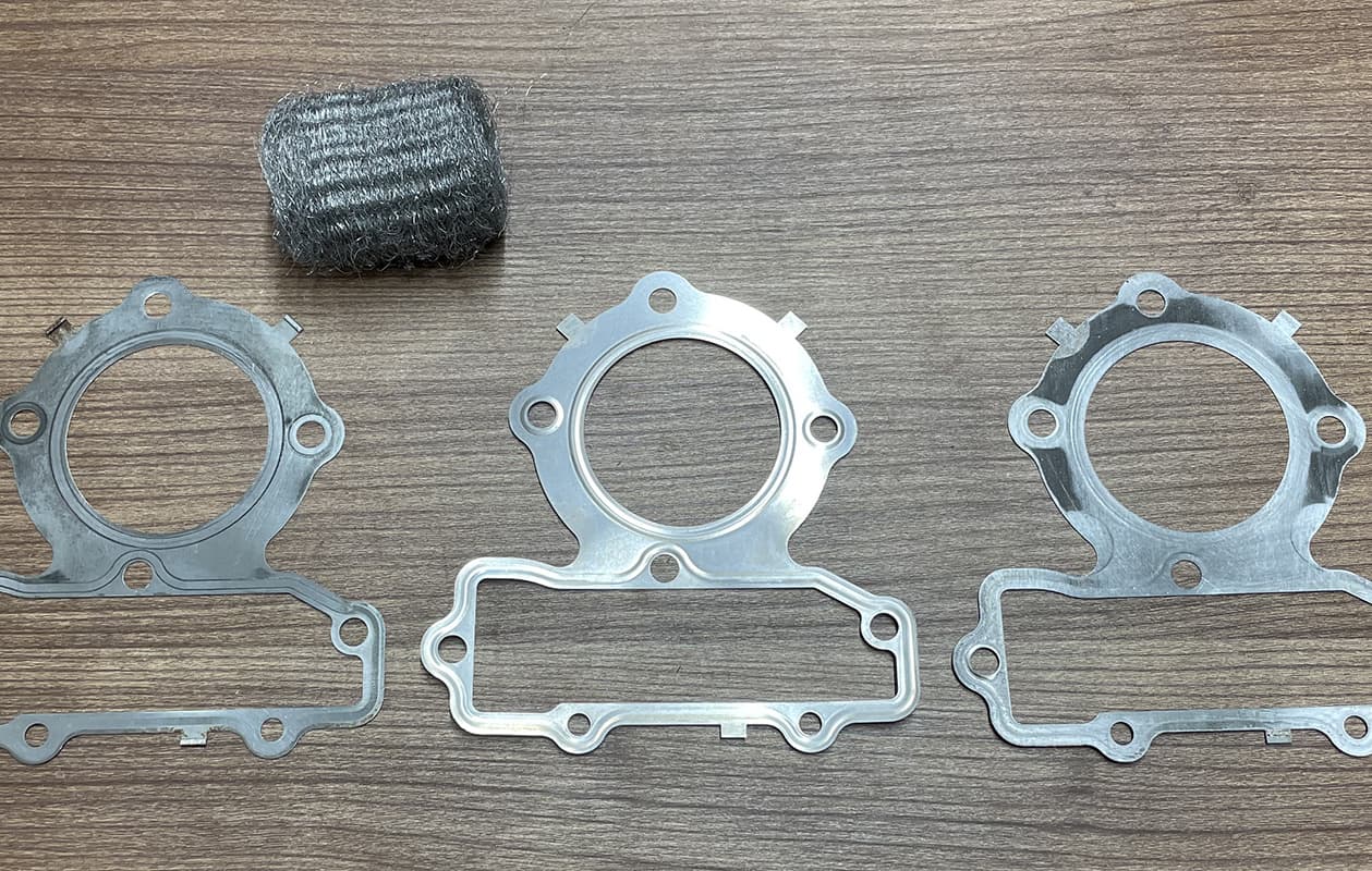 だいたい中身の確認が終了したので組立ます。ヘッドガスケットは、ステンレスの3枚重ねです。スチールウールで、磨いて再利用します。