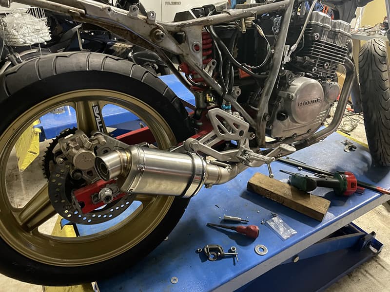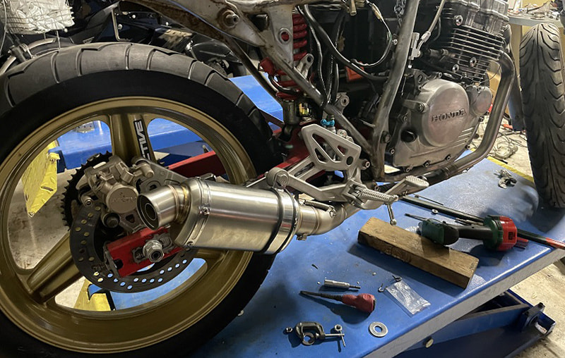 CBX125Fは、単気筒ですが、吸気 排気のバルブ毎に各1本ポートがあります4バルブなので、排気も2本あり、2気筒用のマフラーをさがしそれを加工しました
