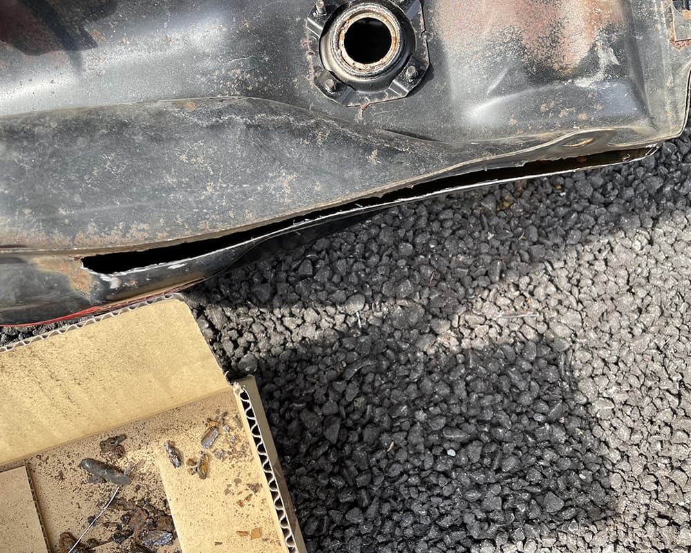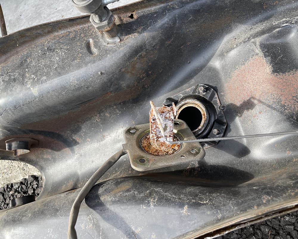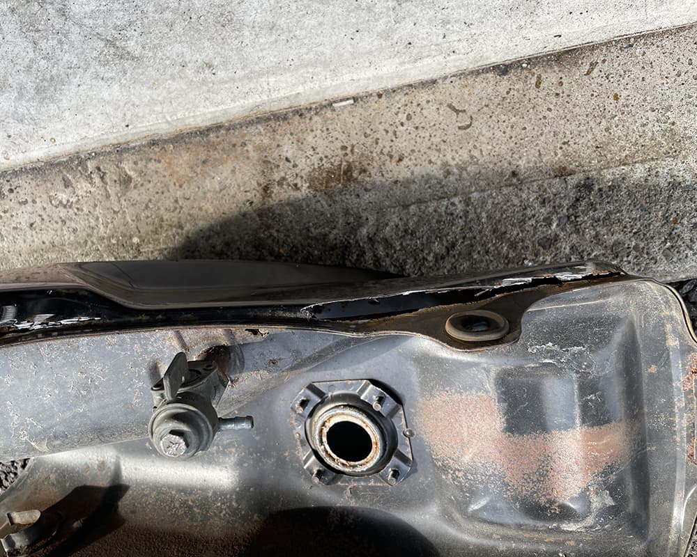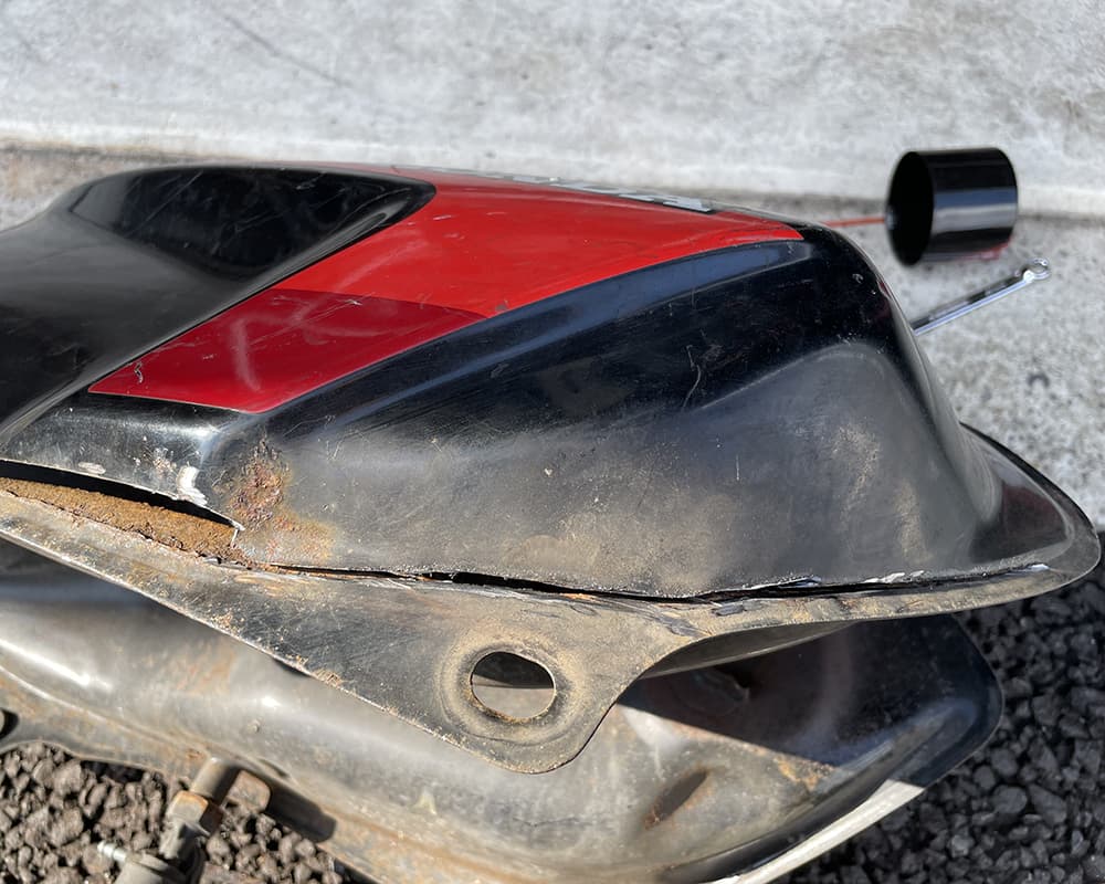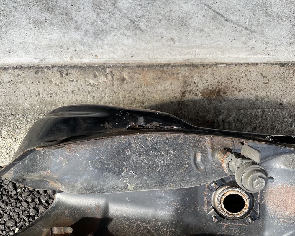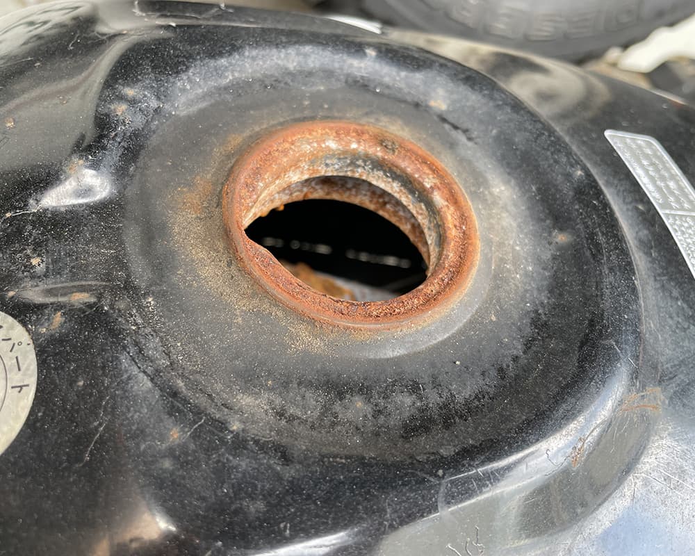 まずはタンク いきなり 給油口から地面が見えます