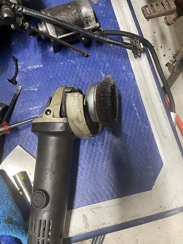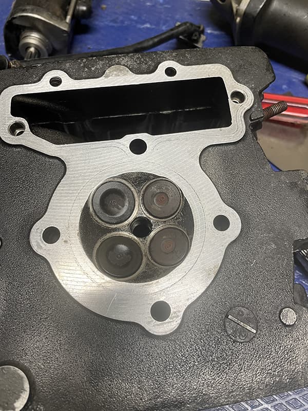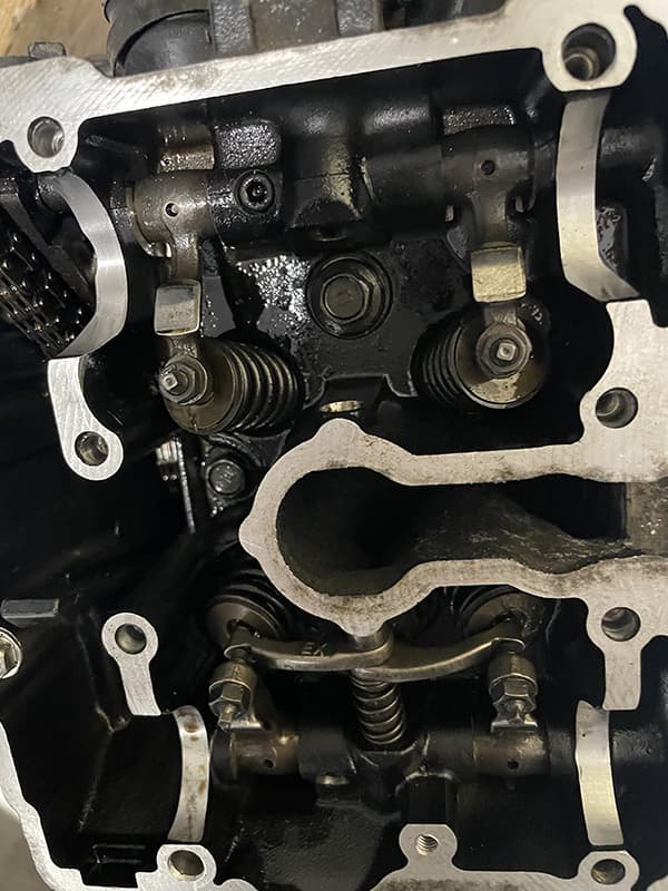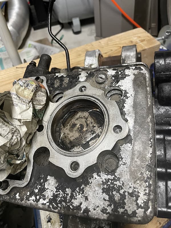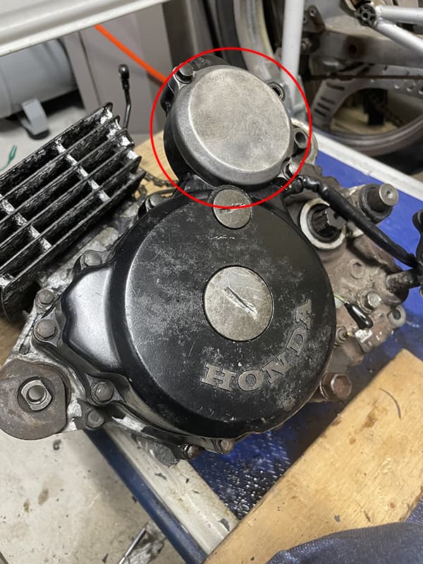 ジェネレータカバー側の古いガスケットをスクライバーで、除去します