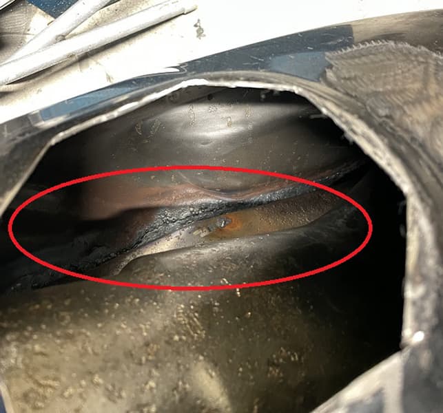 この機会に、内側の溶接の状態を念入りに確認します