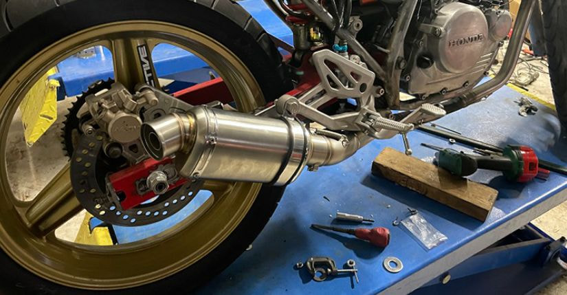 CBX125Fは、単気筒ですが、吸気 排気のバルブ毎に各1本ポートがあります4バルブなので、排気も2本あり、2気筒用のマフラーをさがしそれを加工しました